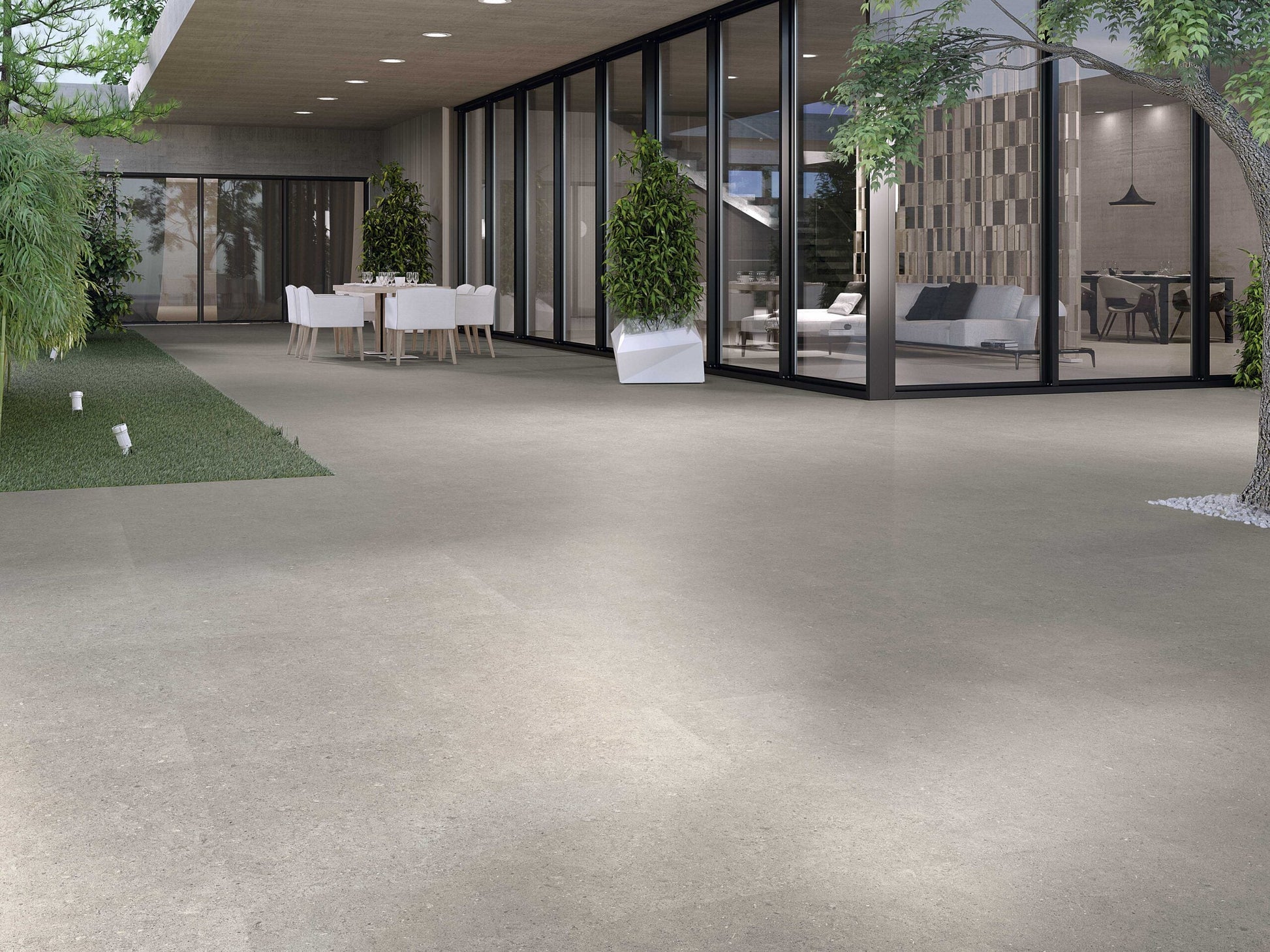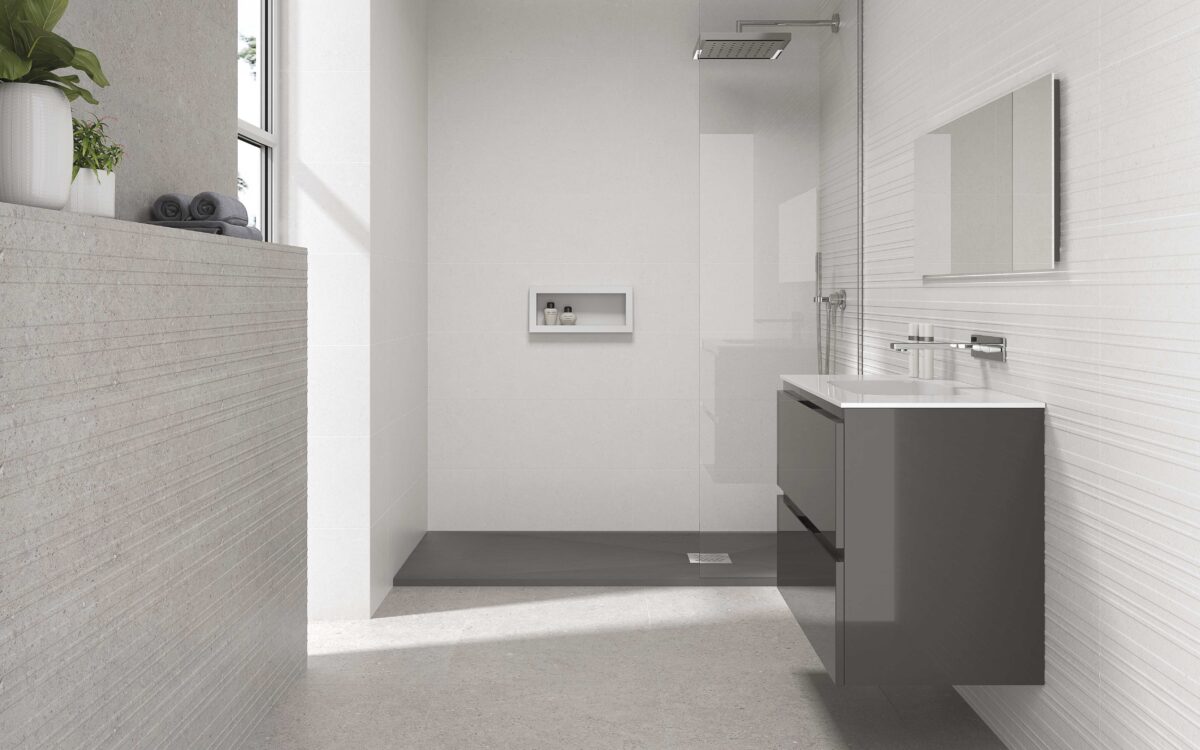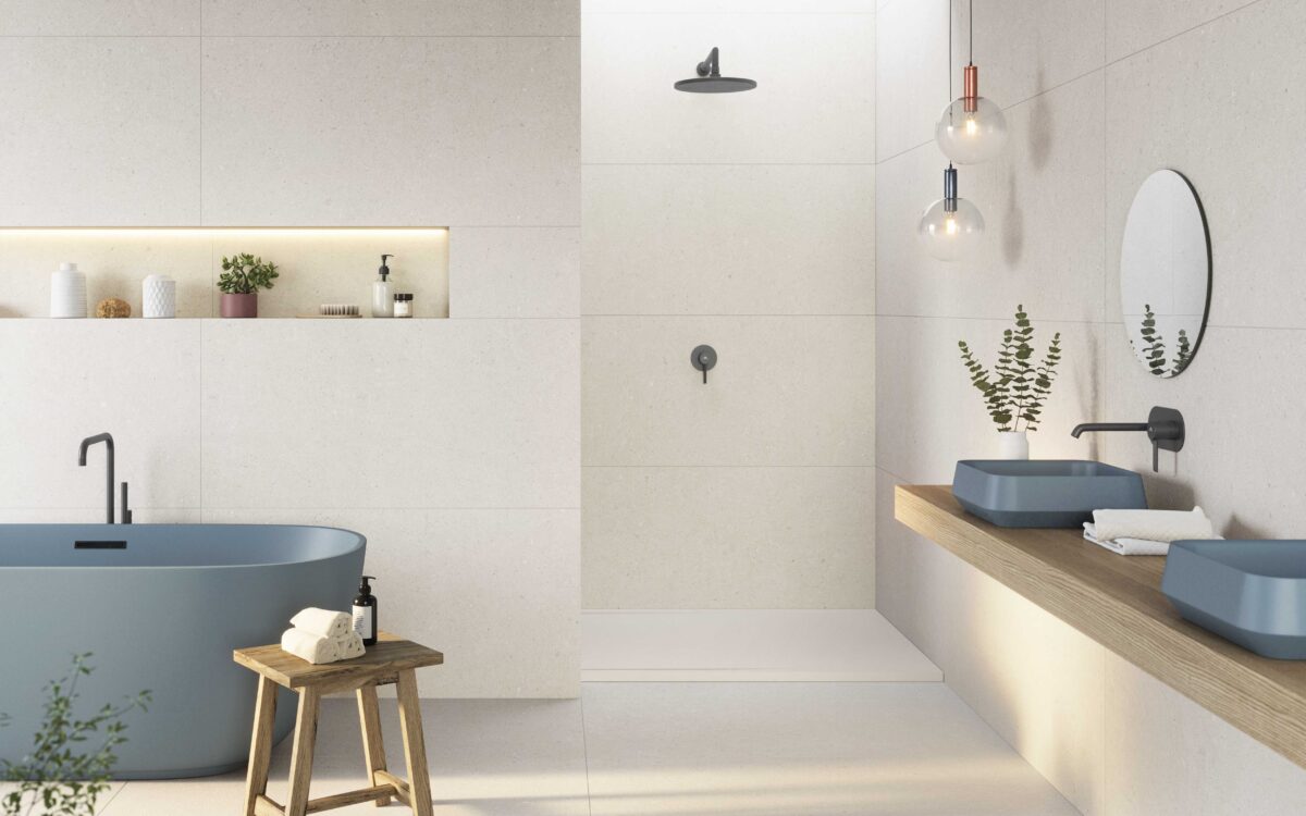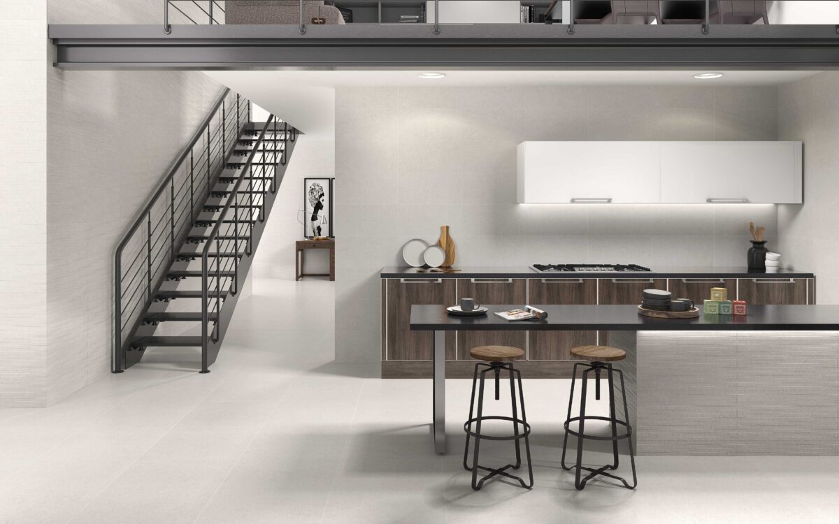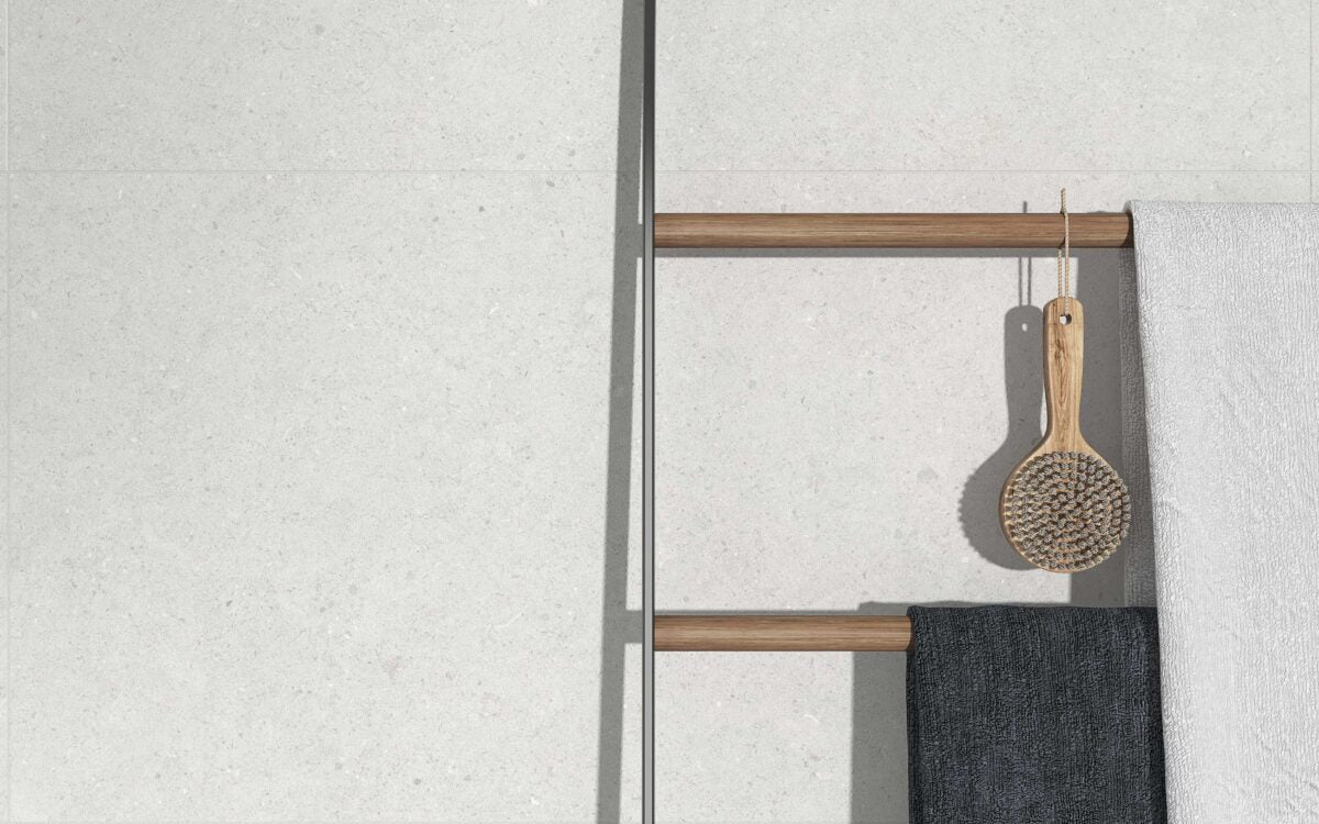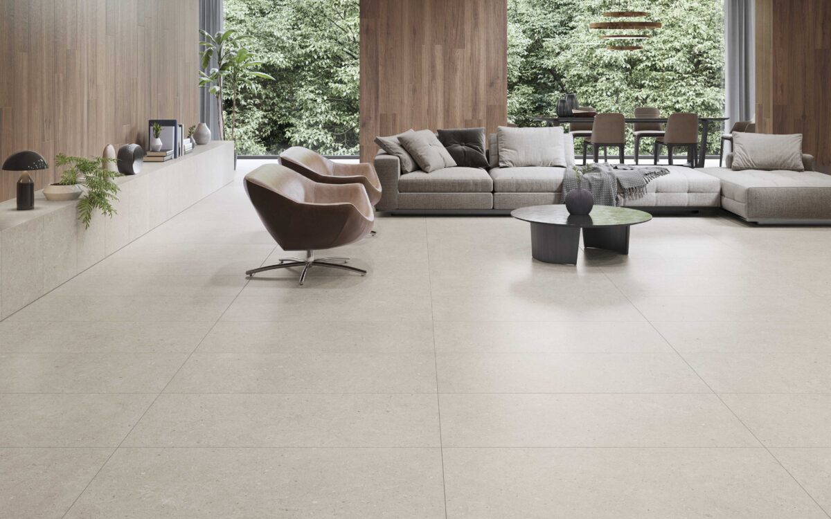 The tile resembles a limestone that forms part of the chalky rocks and mainly made up of calcite and small amounts of minerals, such as quartz and clay. It is a natural stone with a structure and a stone Finish. As we can see, the naturalness of the set stands out with an outstanding result.