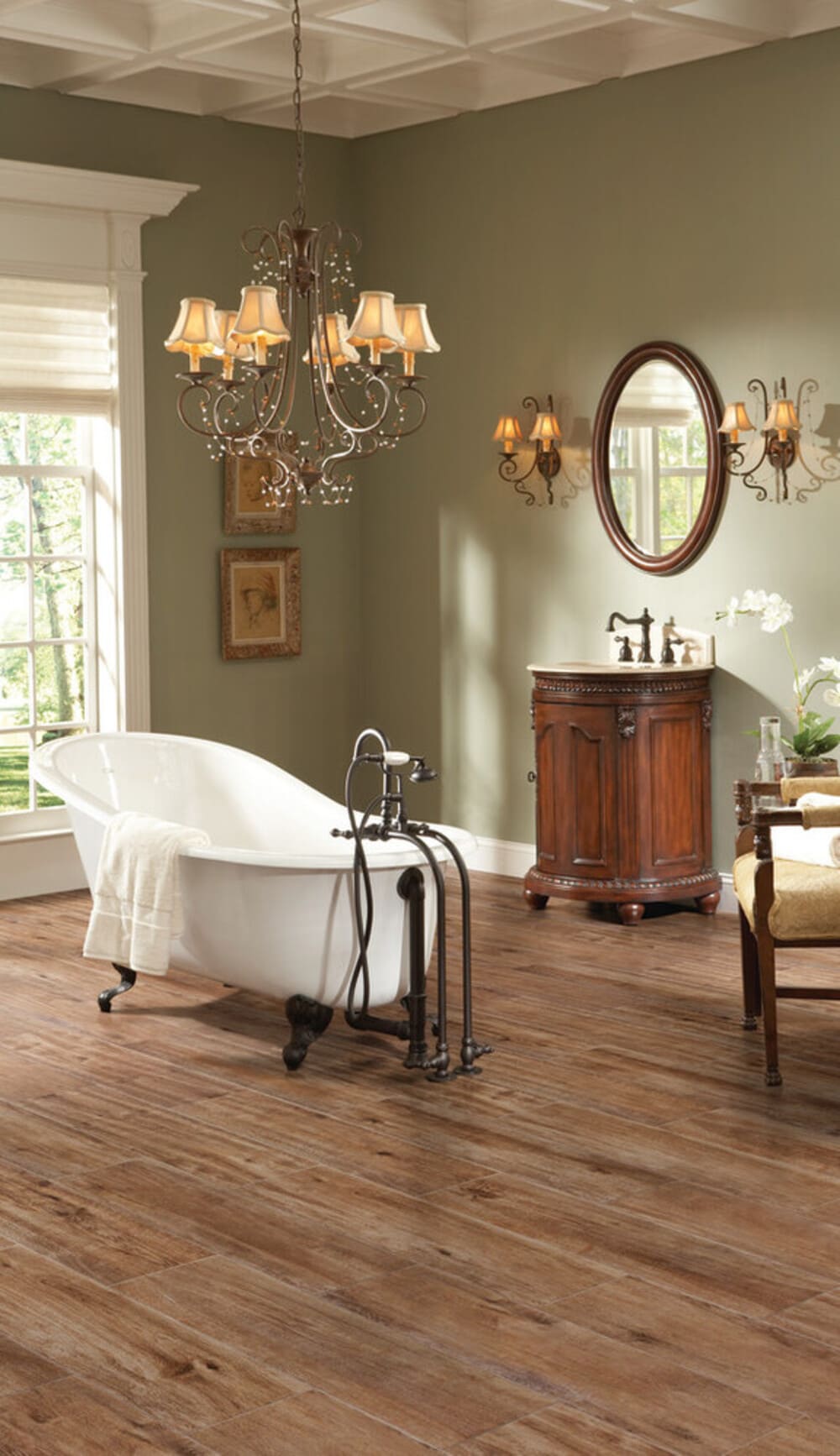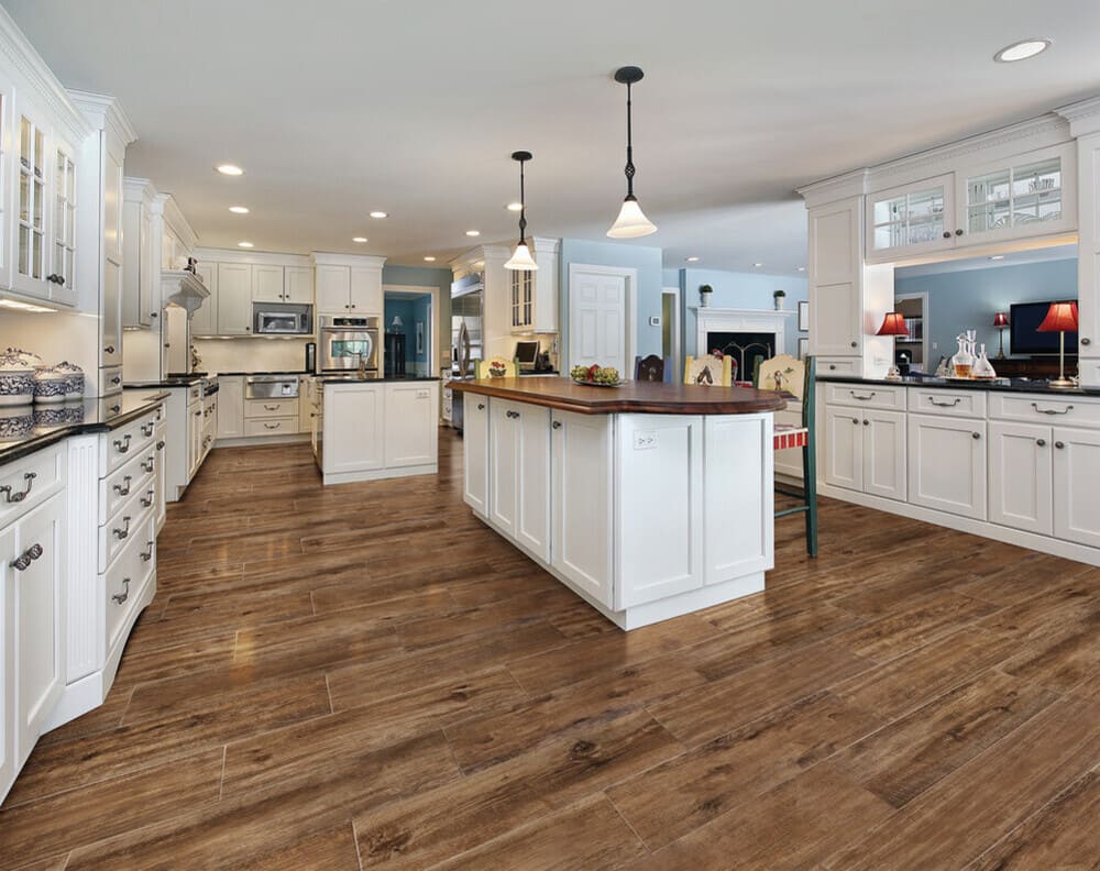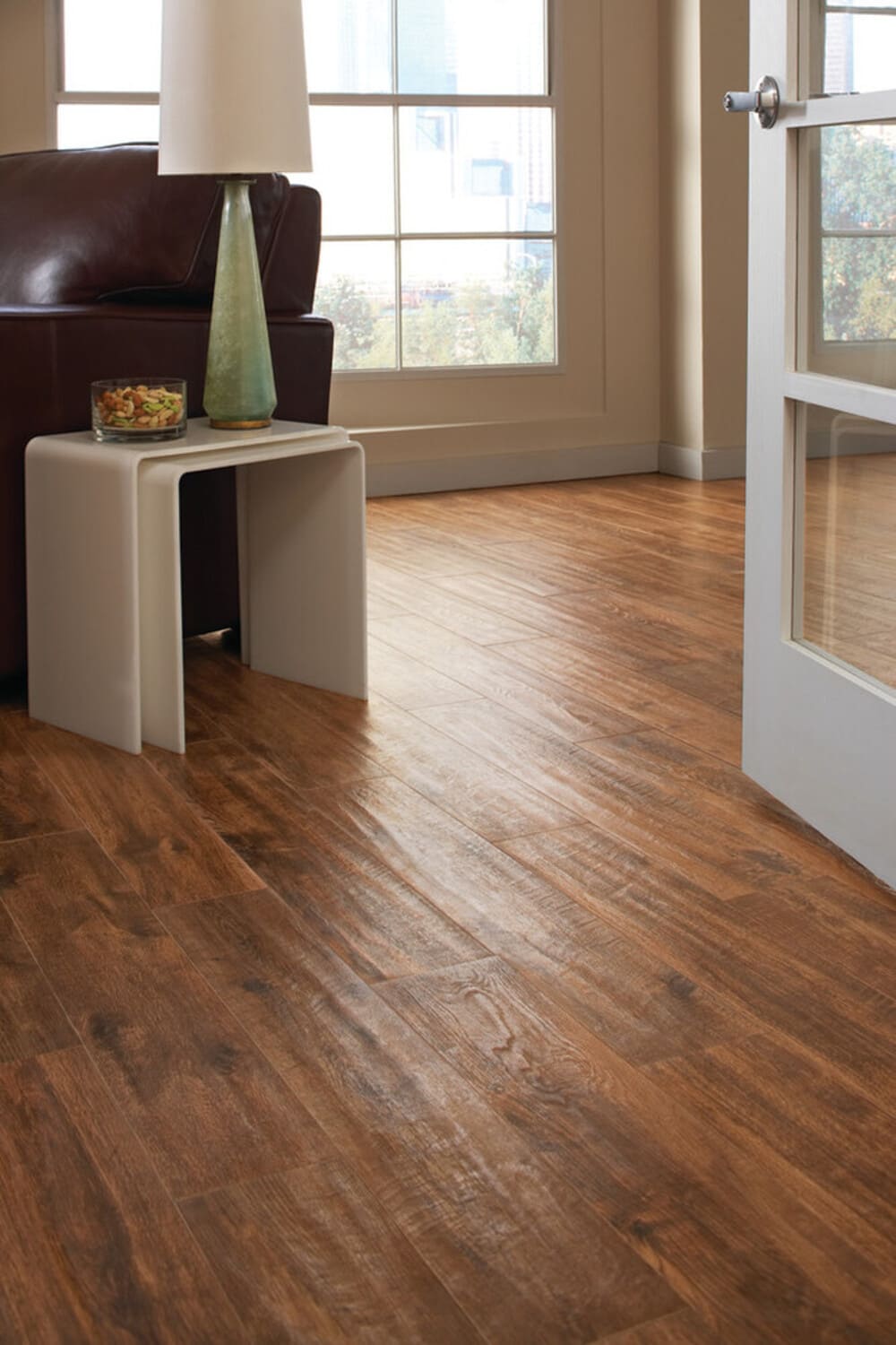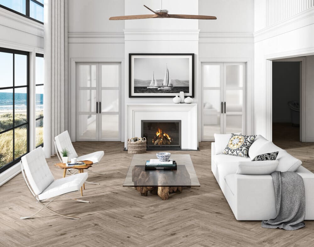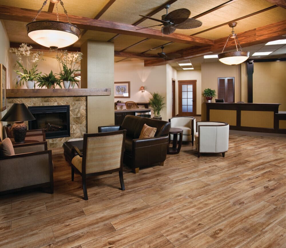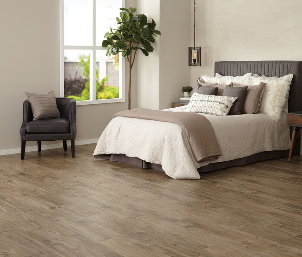 Hand-scraped wood-look porcelain tile that is durable and withstands the wear and tear of everyday use, without sacrificing the Style of a wood look. These tiles boast a remarkable fusion of durability and aesthetics, maintaining their wood-inspired allure even after prolonged use. With a surface that resists scratches, stains, and fading, they assure longevity while preserving the timeless charm of natural wood grains.