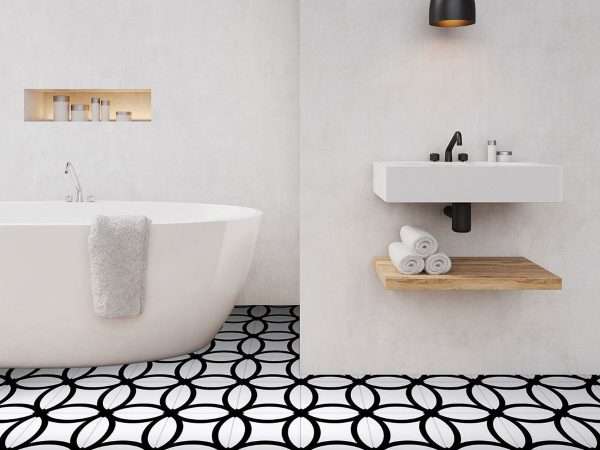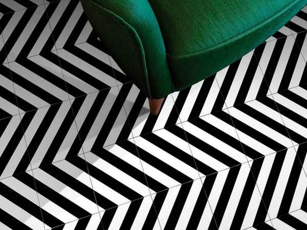 The Art Decor collection boasts multiple attention-grabbing monochromatic designs, making it a popular choice for use as a feature floor or wall tile in bathrooms, kitchens, and even as a kitchen backsplash. Its versatility extends to both floor and wall applications.