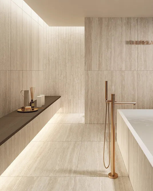 A porcelain tile collection that embodies the timeless allure of natural travertine. With both cross-cut and vein-cut options, Astrum offers a versatile and sophisticated addition to any interior design scheme. The cross-cut tiles offer a smooth and consistent surface, while the vein-cut options showcase the unique and natural linear patterns of travertine. Featuring a range of neutral tones, this collection is designed to complement any decor.